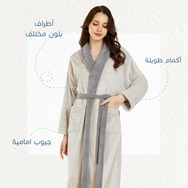 يتميز الروب بأكمامه الطويلة التي تغطي الذراعين بالكامل