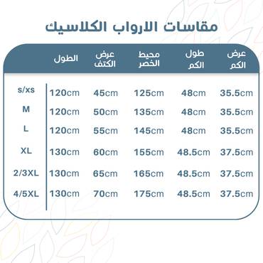 وليناسب إحتياجك حرصنا على توفير مقاسات من XS الى 5XL.